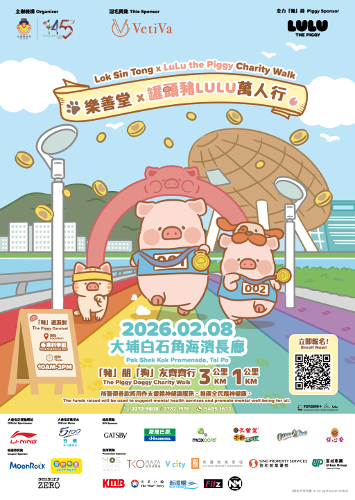 VetiVa呈獻:樂善堂 x 罐頭豬LULU萬人行為九龍樂善堂145周年旗艦步行籌款活動,將於2026年2月8日(星期日)假大埔白石角海濱長廊舉行。人氣IP「罐頭豬LULU」將擔任活動大使,與參加者一同踏出愛心步伐,傳揚善心!活動當日更設有「豬」遊派對(慈善嘉年華),於香港科學園高錕會議中心廣場(金蛋)舉行,提供豐富遊戲、攤位及表演,行善同樂!