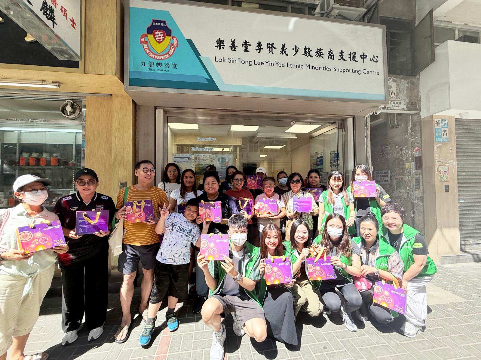 為慶祝中華人民共和國成立76周年及中秋佳節,九龍樂善堂義工組織「樂善之友」舉辦「慶祝國慶76周年:樂善之友 - 樂善共迎中秋日」送暖活動,招募近600位「樂善之友」義工上門探訪黃大仙區的長者,同時邀請本堂「友智識」長者數碼共融計劃的義工一同參與,上門教導旺角區的長者於手機安裝及使用不同實用的政府應用程式,提升長者對數碼科技的認識及掌握。活動亦延伸到本堂各區多個單位,包括深水埗「社區客廳」家庭、九龍城區少數族裔、觀塘、荃灣及大埔區「樂屋」家庭及本堂轄屬敬老鄰舍中心等,逾2,300多戶長者及基層家庭受惠,一同慶賀國慶及中秋。
