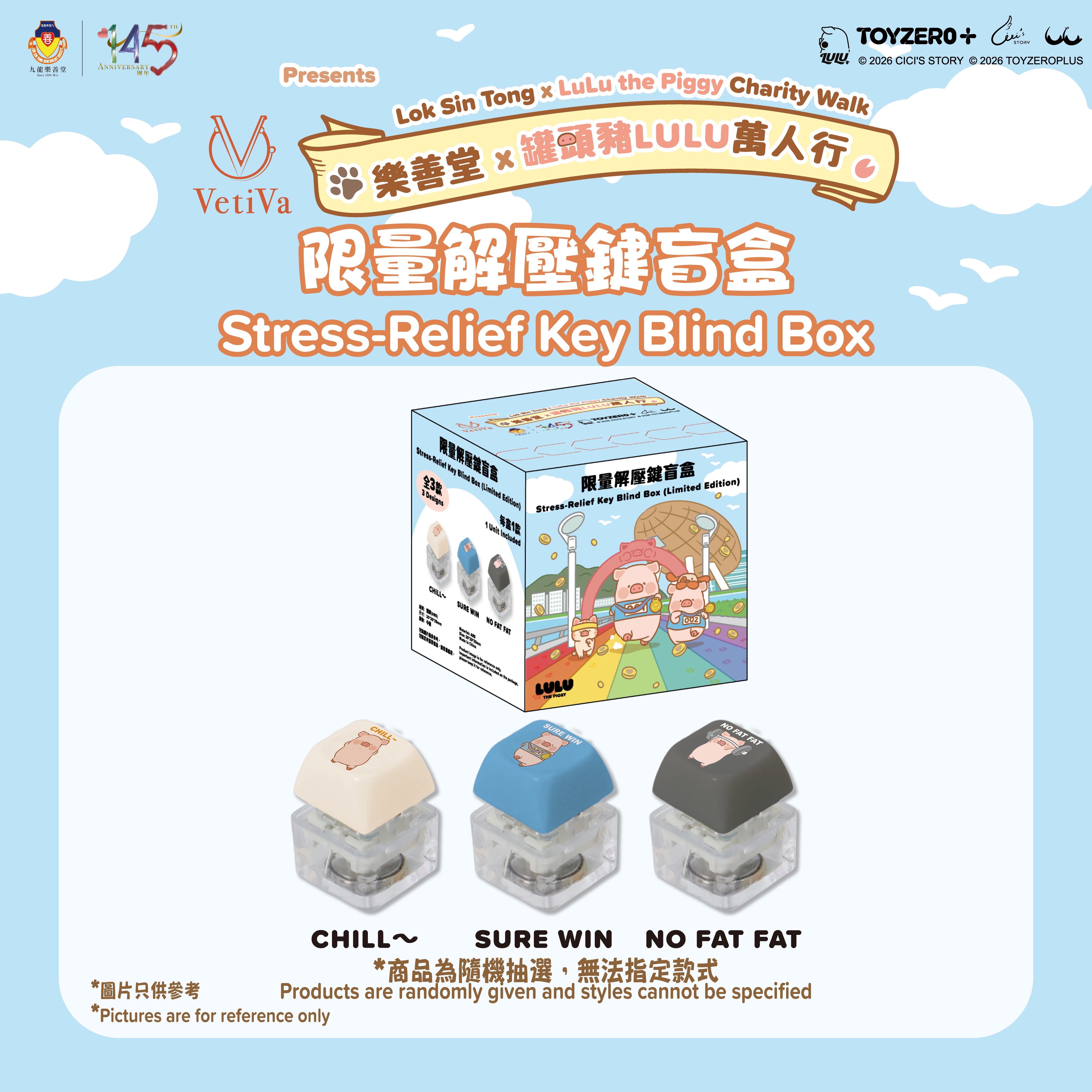 - 慈善價:港幣$58/盒 *每盒包含一款,產品為隨機抽選,無法指定款式