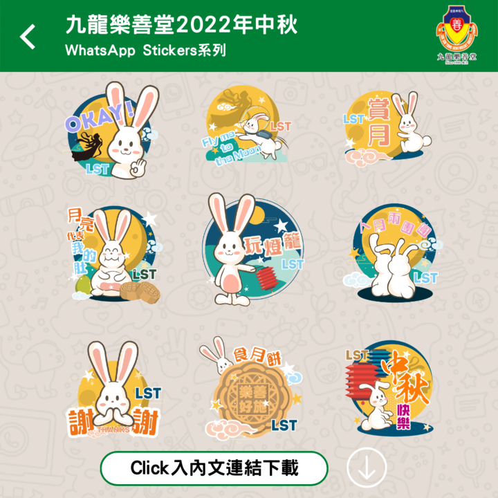 為了慶祝中秋節,樂善堂設計了一系列的WhatsApp Stickers供大家下載。