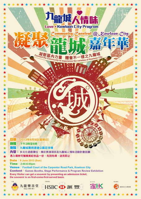 為與社區人士分享活動成果,本堂將於2013年6月9日(星期日)舉辦「凝聚龍城嘉年華嘉許禮」,並設嘉許禮以答謝計劃期間以不同形式回饋社區的協作單位,同場更設攤位遊戲、計劃成果展覽及表演,有關活動詳情如下: