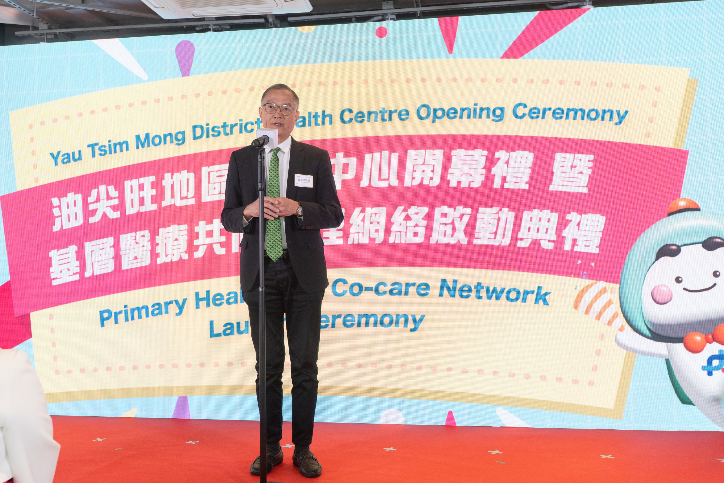 醫務衞生局局長盧寵茂BBS太平紳士今日(三月十三日)主持「油尖旺地區康健中心開幕禮暨基層醫療共同治理網絡啟動典禮」,由負責營運油尖旺地區康健中心的九龍樂善堂主席李培埡女士陪同擔任主禮嘉賓,象徵油尖旺區基層醫療服務發展踏入新里程碑。