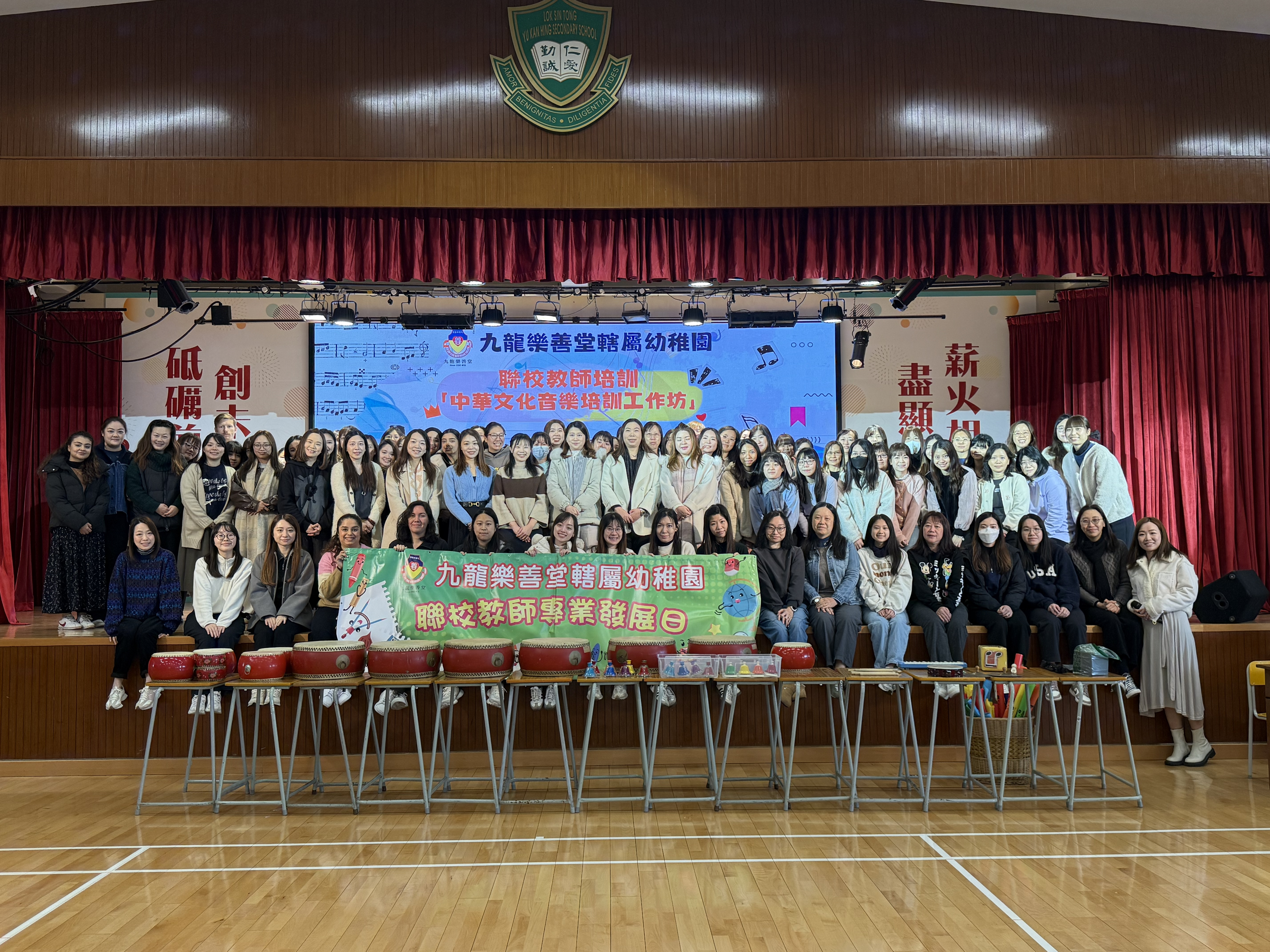 早前樂善堂轄屬幼稚園舉辦了聯校教師發展日,本年度以「中華文化音樂培訓」為主題,內容涵蓋節奏訓練、常見樂器演奏技巧,以及如何將音樂元素融入日常課堂等實用環節。教師們透過工作坊及即場示範,學習如何因應幼兒年齡發展需要,以歌曲帶領不同年級幼兒進行遊戲,從而豐富校本音樂課程。