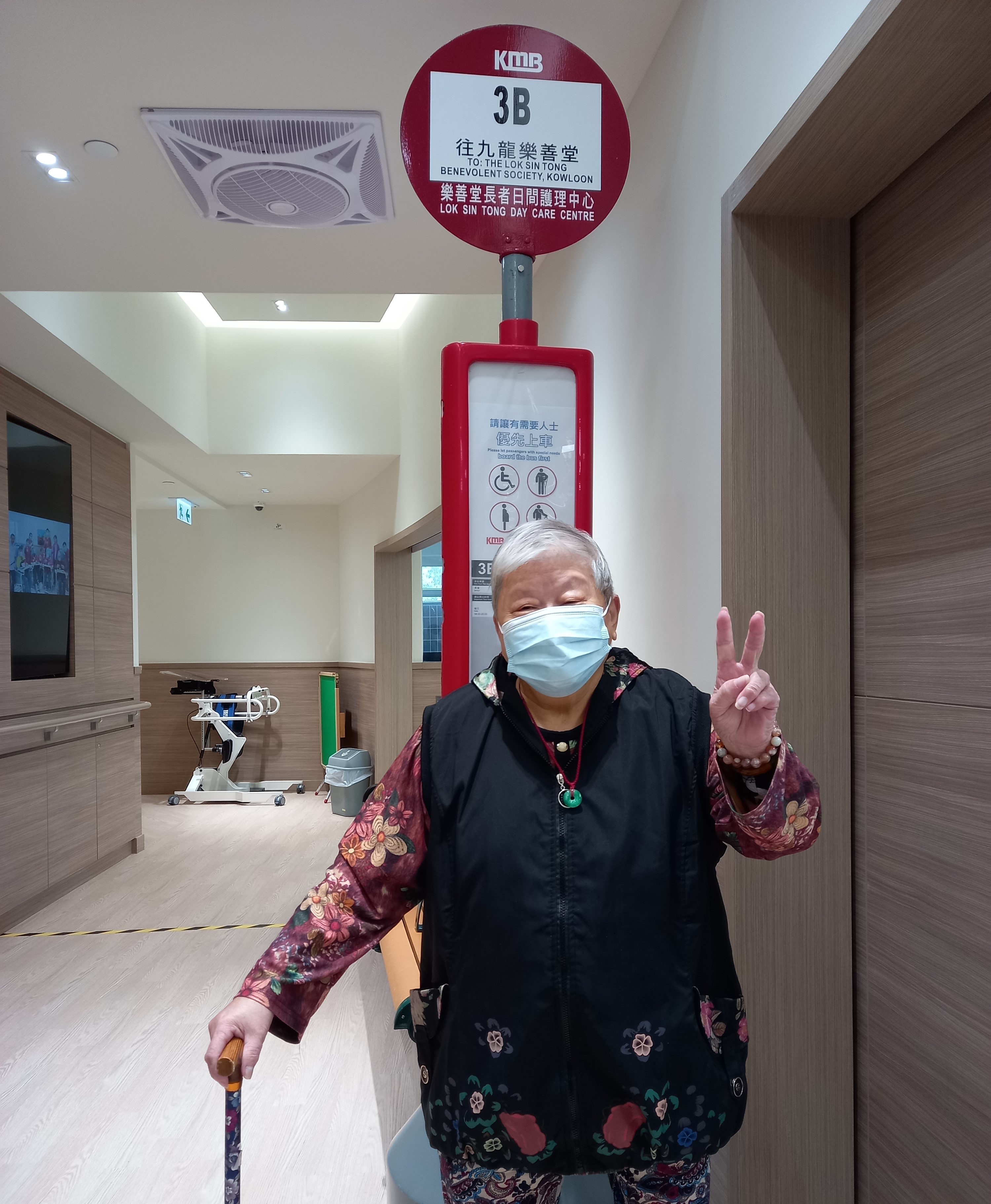 巴士站牌設於中心入口的主要通道,旁邊設有木椅,長者們包括鄧婆婆都十分喜歡在此安坐休息,因可喚起他們舊日的生活經驗,減輕緊張的情緒,增添生活話題和樂趣。中心的支援團隊更可在安全及輕鬆的環境下與長者交談,進行訓練和治療。